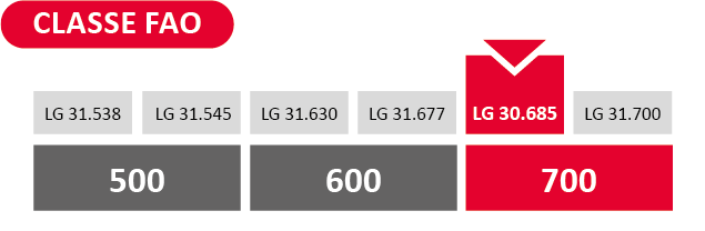 L’inserimento della spiga è basso, regolare e omogenea nel campo e favorisce una migliore tenuta della pianta agli eventi temporaleschi. Anche nelle situazioni climatieche più limitanti LG 30.685 è in grado di ridurre gli impatti sulla produzione.