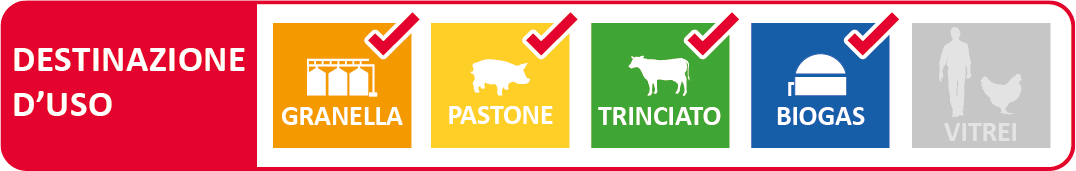 Ibrido di ciclo medio, perfetto compromesso tra produzione, qualità ed energia e quindi ideale per trinciati in seconda semina ricchi in amido.