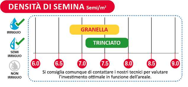 Ibrido adatto sia alle prime semine con raccolte precoci, sia alle seconde semine; combinerà una corretta sostanza secca ad un elevato tenore in amido, valorizzando il potenziale produttivo del terreno.