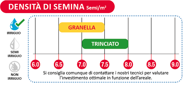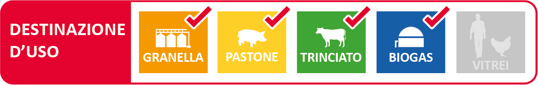 Ottimo produttore di granella, spiga uniforme e ben impollinata, ed eccellente produttore di trinciato.