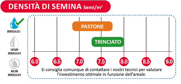 L’altezza della pianta, la dimensione della spiga, l’elevato stay green e il veloce dry down della granella assicurano un trinciato completo e ricco in amido o otti mi pastoni di granella e integrali.