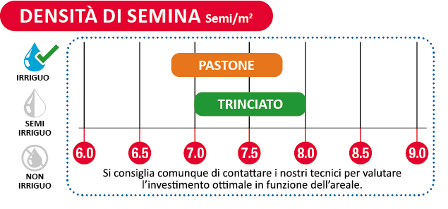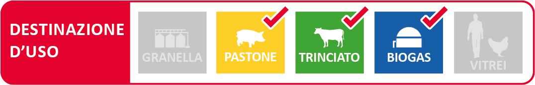 Ciclo 700 pieno, taglia elevata, buona fogliosità e con spiga globosa ad elevato numero di ranghi. L’ottimo rapporto tra la spiga e la parte verde, unito alla maturazione veloce della granella, si trasformano in trinciati con elevato valore di amido. Adatto agli ambienti molto ferti li del nord ma anche del sud Italia per la sua tolleranza agli stress termici.